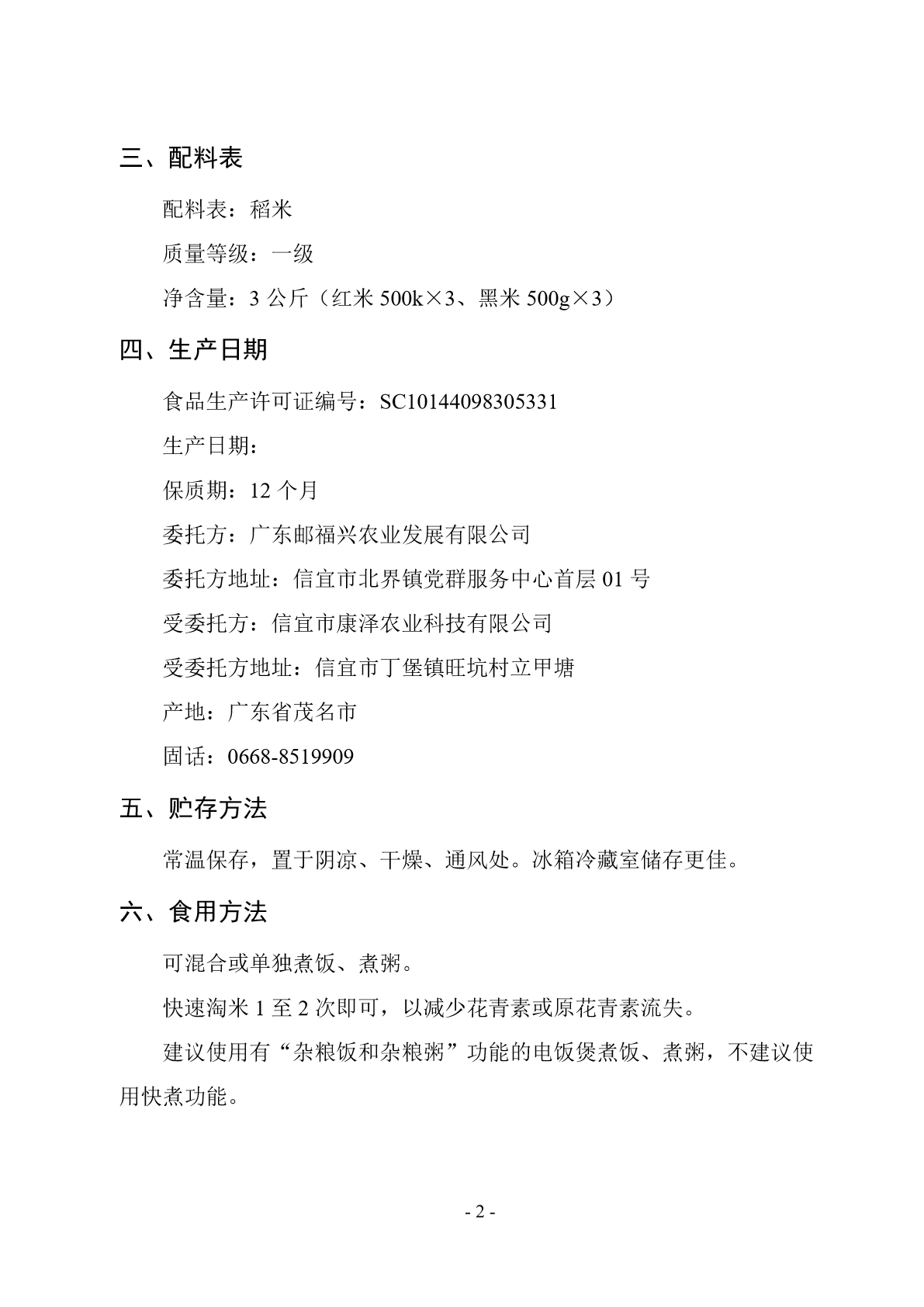 | 邮福兴红米黑米 | “信”字号 | 邮福兴 | 信宜市北界镇 | 信宜市粤百盛农业有限公司 | 钟生 |