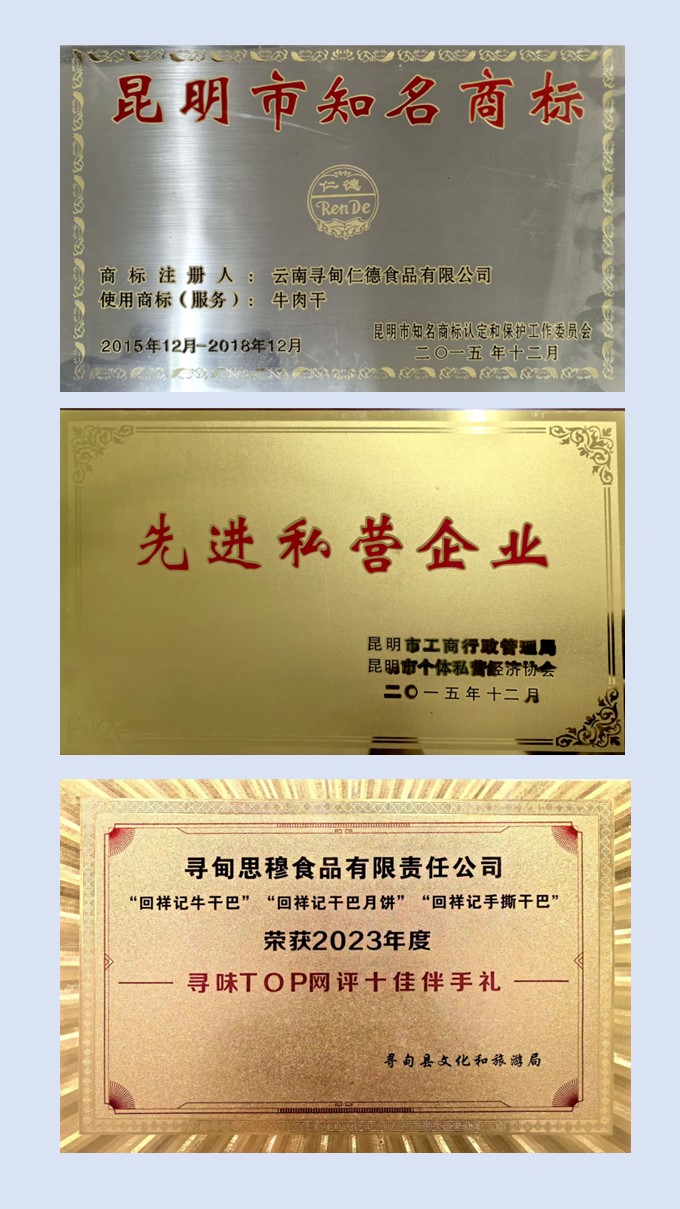 | 云南寻甸仁德食品有限公司是一家专业生产牛干巴等牛肉制品的清真食品企业。2000年注册成立,2022年与寻甸思穆食品有限责任公司合并经营,是昆明市农业产业化市级重点龙头企业。 目前公司已全线实现标准化生产,加工车间面积达3300m2,公司总面积超过7500m2,已建成并投产千万元级设计加工单元,达到年产百吨牛干巴的目标。 公司现有“仁德”和“回祥记”两个品牌。 | |||||