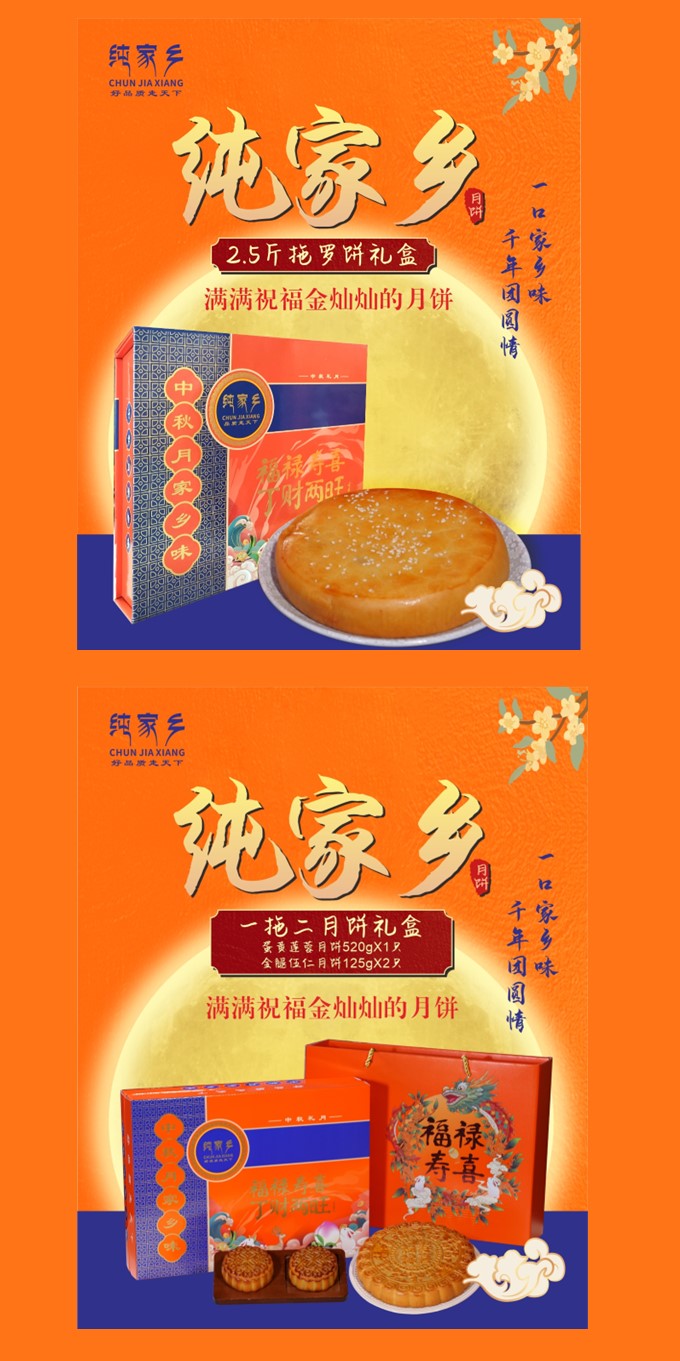纯家乡一拖二金腿五仁月饼礼盒 | 纯家乡 | 广东省茂名市化州市 | 化州市纯加香食品有限公司 | ||